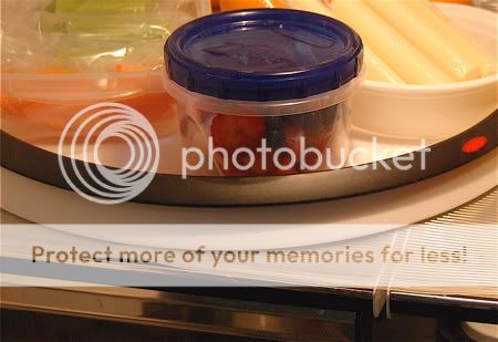 Remember the self-serve snack tray I posted about previously? This is the new and improved version -- on a lazy susan! Now Emily can even reach the items in the back!