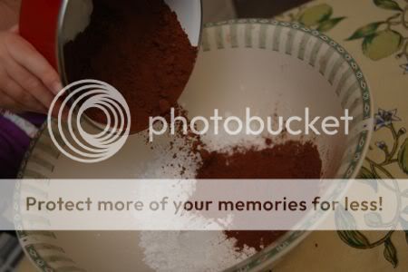 Next, to the powdered sugar, add the (unsweetened) cocoa powder, then the crushed (pulverized..??) candy canes.