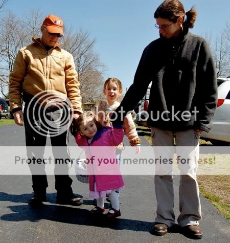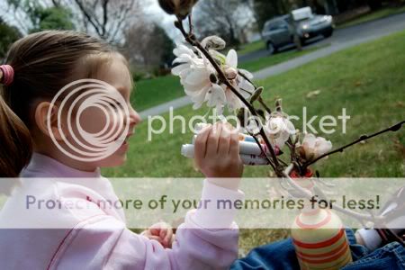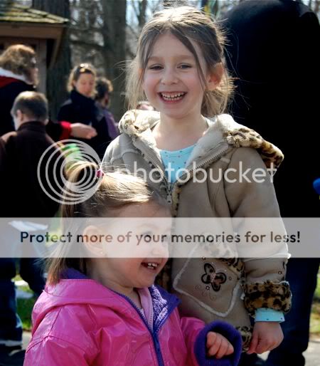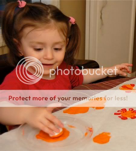To form the bunny's head and ears, I painted Emily's palm, first, and ring fingers with the white paint.